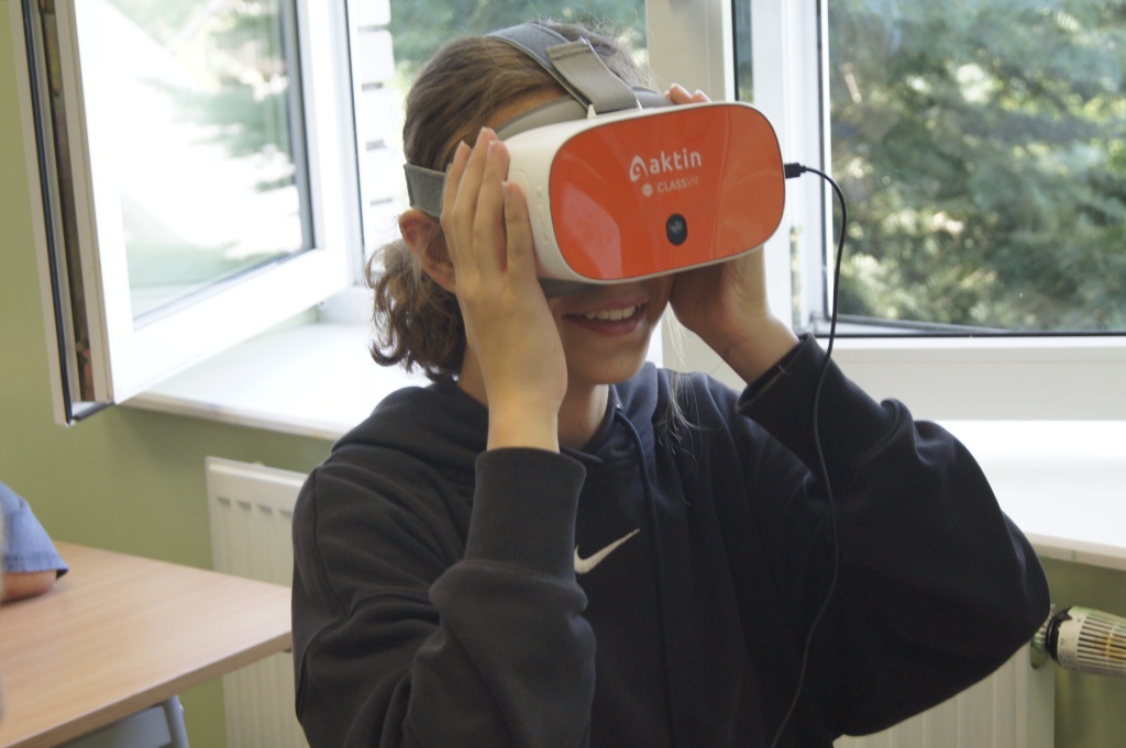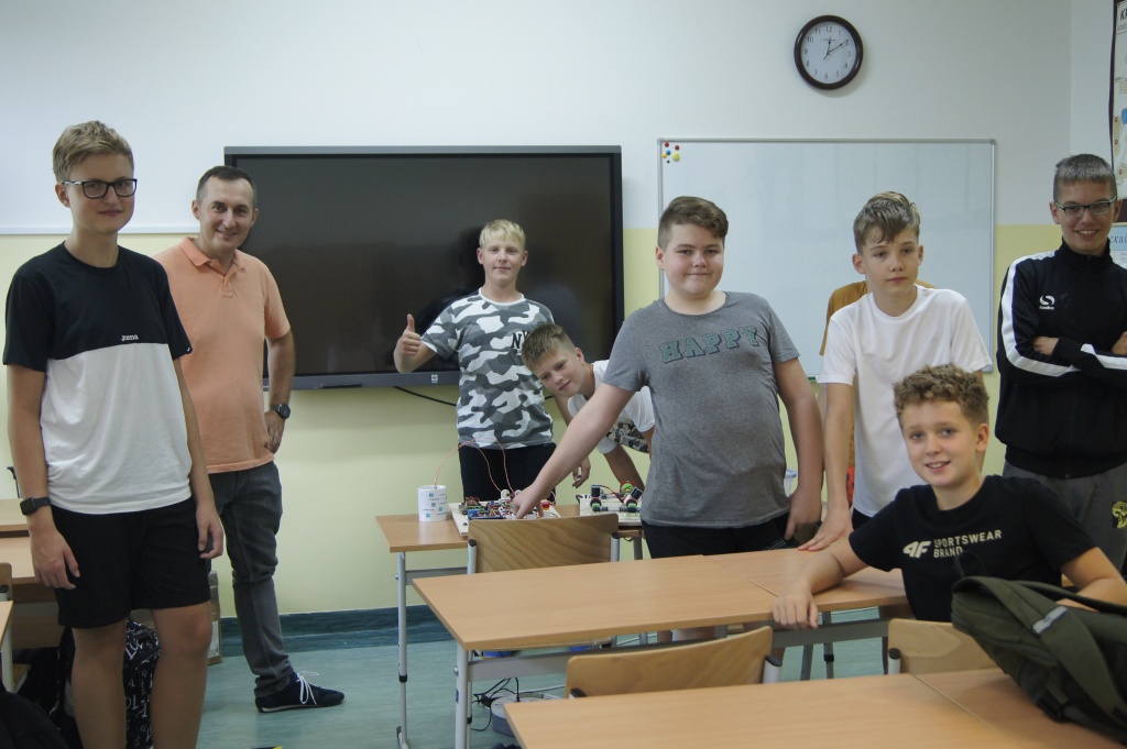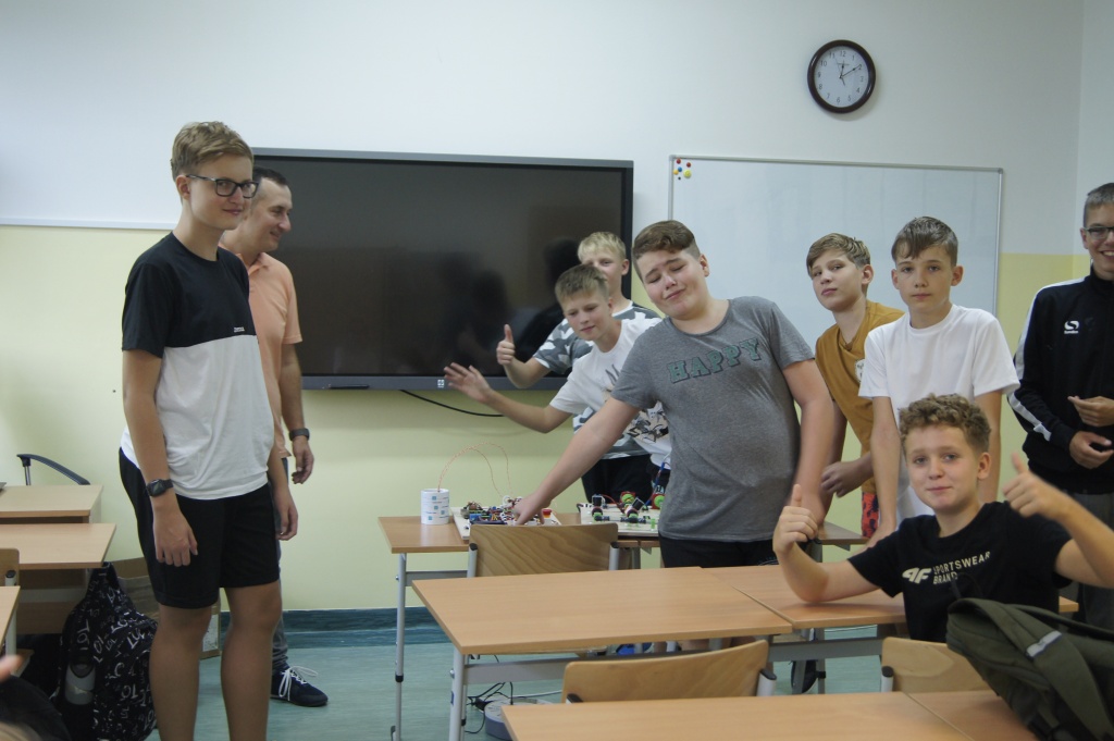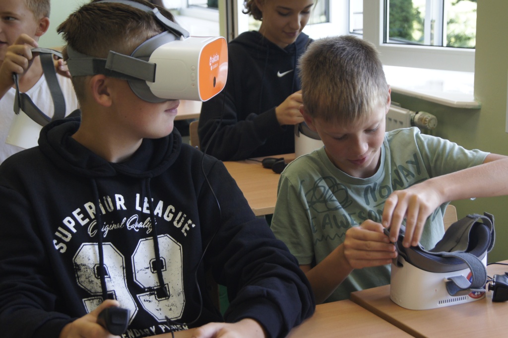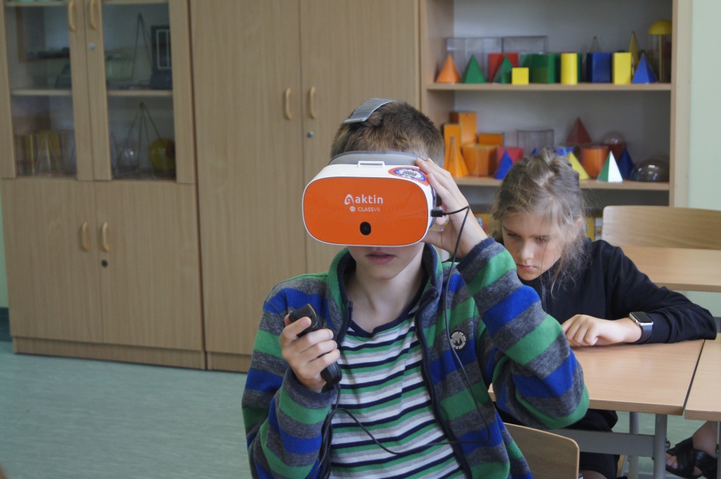Uczniowie z klas 4-7 mieli okazję zapoznać się z możliwościami okularów VR. Przenieśli się na drugi koniec świata, by zobaczyć podwodny świat, doświadczyć lotu balonem. Mogli też zaobserwować jak przy pomocy prostego mikrokontrolera powstaje narzędzie do podlewania roślin. Okazało się, że to automat decyduje o momencie rozpoczęcia podlewania na bazie odczytów z czujników wilgotności (jeżeli roślina ma za sucho, następuje podlewanie aż do momentu, gdy ziemia uzyska odpowiednią wilgotność).