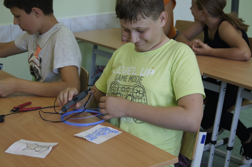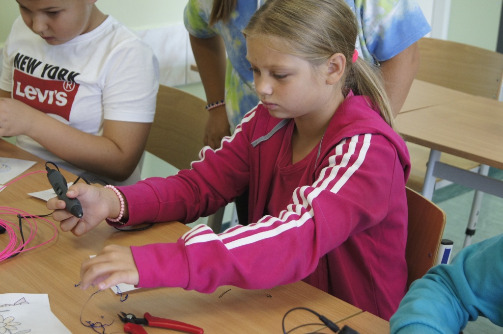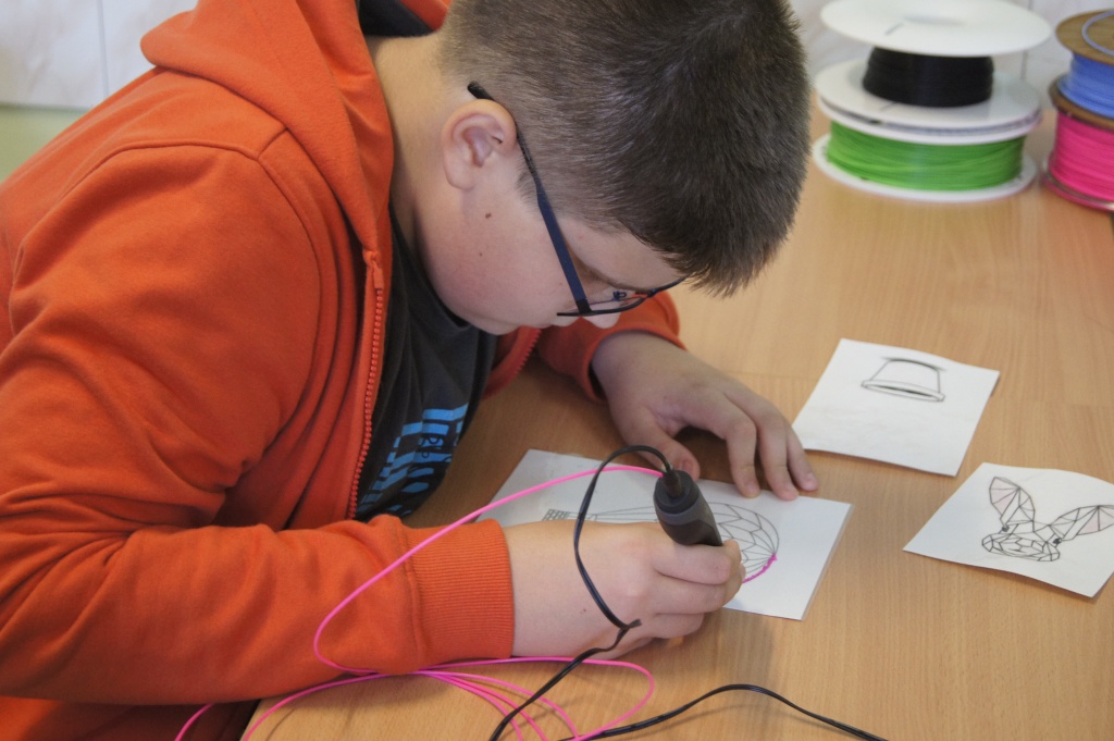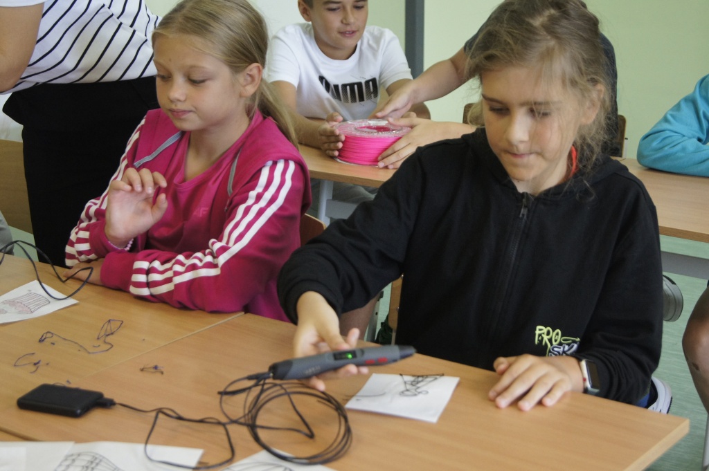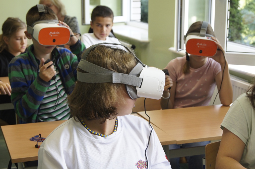 Uczniowie z klas 4-7 mieli okazję zapoznać się z możliwościami okularów VR. Przenieśli się na drugi koniec świata, by zobaczyć podwodny świat, doświadczyć lotu balonem. Mogli też zaobserwować jak przy pomocy prostego mikrokontrolera powstaje narzędzie do podlewania roślin. Okazało się, że to automat decyduje o momencie rozpoczęcia podlewania na bazie odczytów z czujników wilgotności (jeżeli roślina ma za sucho, następuje podlewanie aż do momentu, gdy ziemia uzyska odpowiednią wilgotność).