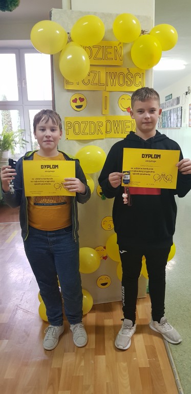 Z okazji Dnia Życzliwości i Pozdrowień rozstrzygnęliśmy konkurs na najbardziej oryginalny sposób powitania. Zwycięzcami zostały Anita i Roksana z klasy 4.