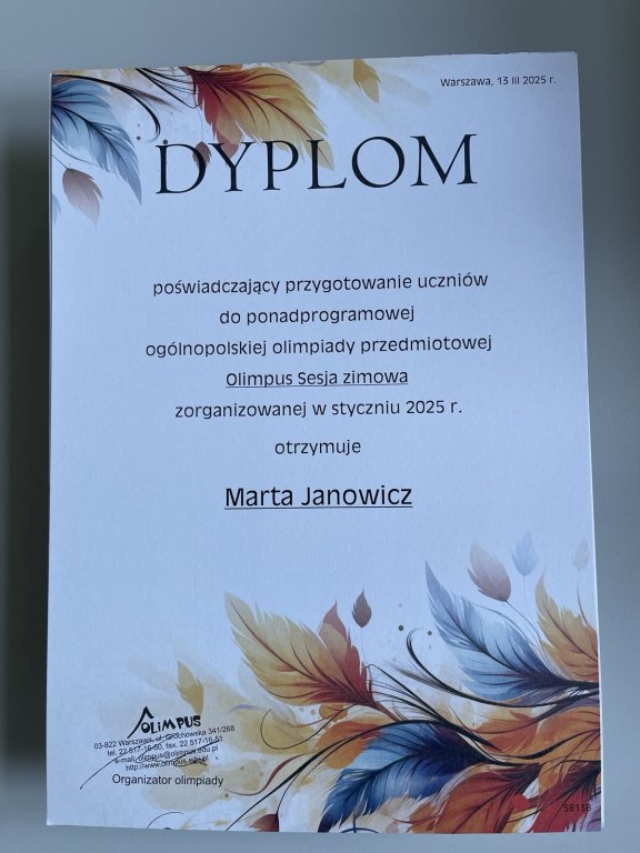 Gratulujemy wszystkim uczniom i zachęcamy do udziału w kolejnych sesjach olimpiady językowej! Dziękujemy Pani Marcie Janowicz za koordynowanie Olimpiady i przygotowanie uczniów.