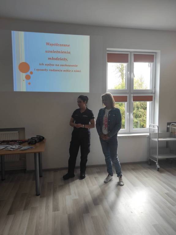 W dniu dzisiejszym odbyło się spotkanie uczniów klasy 7 z panią Joanną Bieszczad i aspirant Anną Olechowską KPP w Sokółce na temat „Współczesne uzależnienia młodzieży, ich wpływ na zachowanie i sposoby radzenia sobie z nimi”. Uczniowie wysłuchali wykładu na temat uzależnień, zwłaszcza alkoholu. Mieli możliwość przetestowania alkogogli. Spotkanie miało na celu uczulić młodzież na uzależnienia i pokazać konsekwencje prawne.