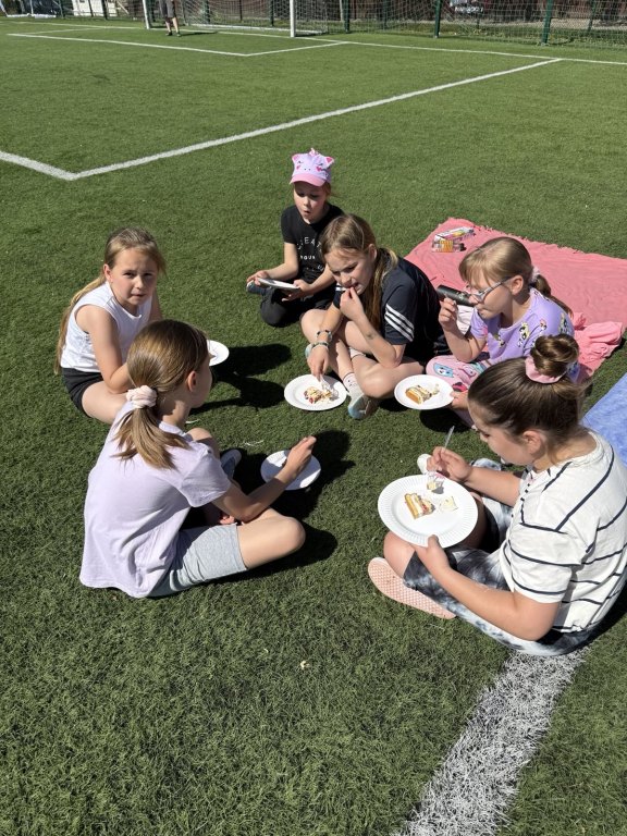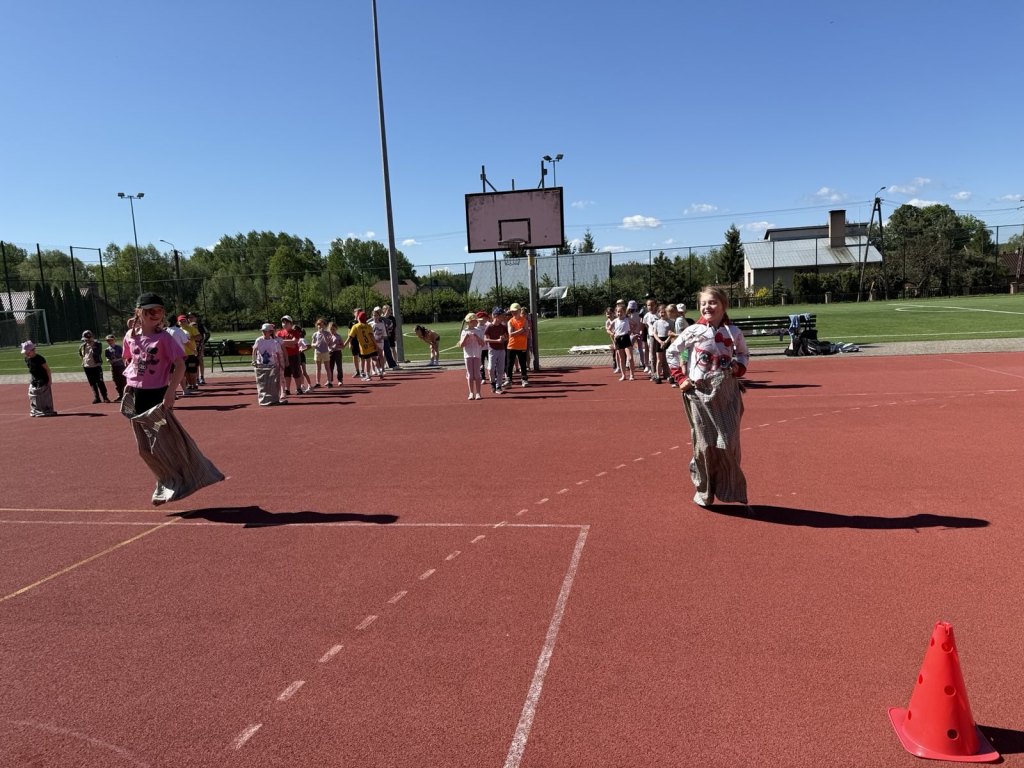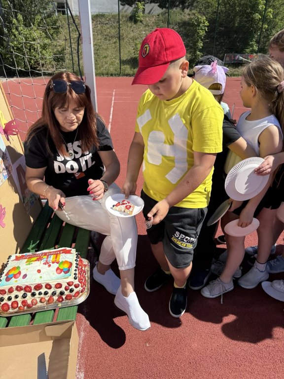 Uczniowie młodszych klas brali udział w konkurencjach sportowych i zabawach integracyjnych. Były wyścigi, przeciąganie liny, malowanie w plenerze, malowanie twarzy i słodka niespodzianka, przepyszny tort ufundowany przez panią Jolę Pul.