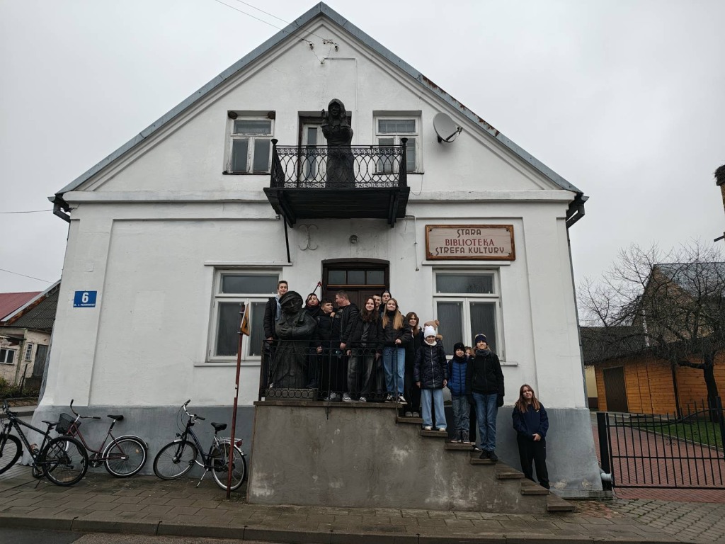 | Uczniowie klas 6 i 7 odbyli fascynującą wycieczkę, w ramach lekcji plastyki, do Strefy Kultury, który kiedyś mieściła starą bibliotekę. To niezwykłe miejsce pozwoliło im przenieść się w czasie i poznać historię naszego miasteczka z zupełnie nowej perspektywy! Podczas wizyty uczniowie mieli okazję zwiedzić trzy wyjątkowe pomieszczenia. Pierwsze pomieszczenie upamiętniające społeczność żydowską. To miejsce, gdzie uczniowie mogli dowiedzieć się o bogatej historii i kulturze Żydów, którzy przez lata współtworzyli naszą lokalną społeczność. Drugie, to obraz dawnej izby każdego, kryńskiego domu, a trzecie to mieszczański salonik. Dodatkową atrakcją była wystawa obrazów pana Tomasza Pytla, która wzbogaciła doznania wizualne. Serdecznie dziękujemy pani Lucynie Jurkiewicz za poświęcony czas, ciepłą atmosferę i możliwość odkrycia wystawy w tak ciekawy sposób. |