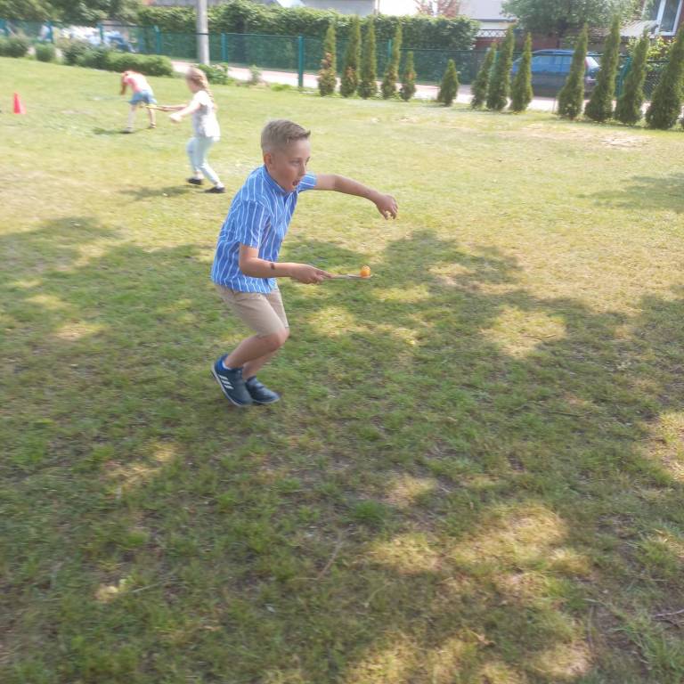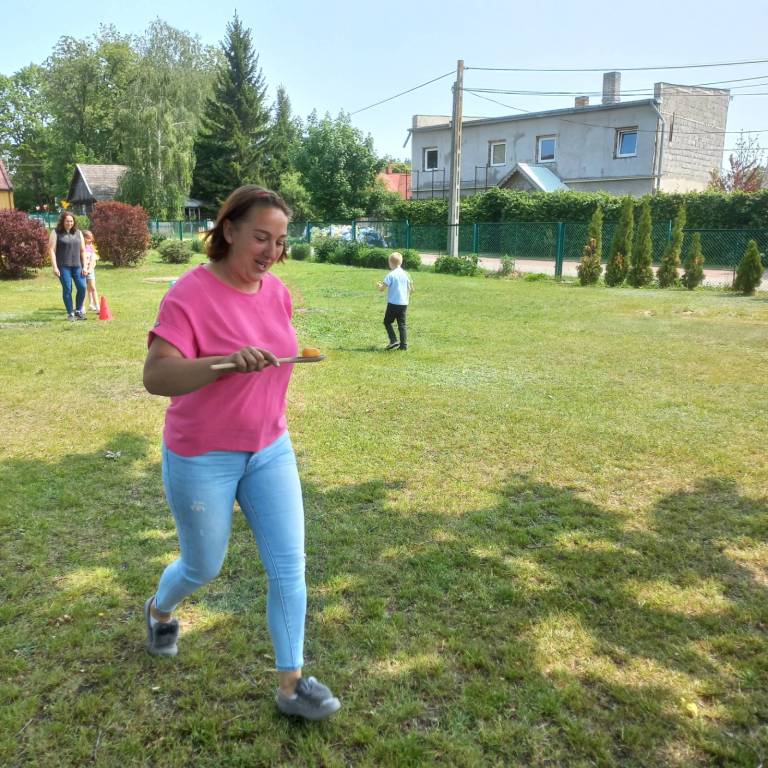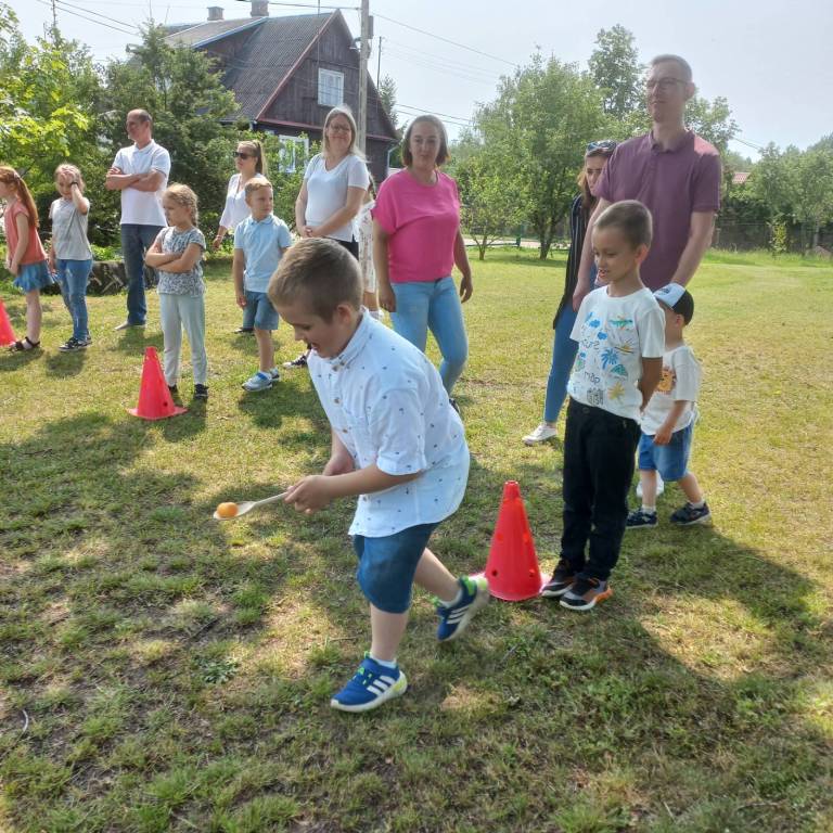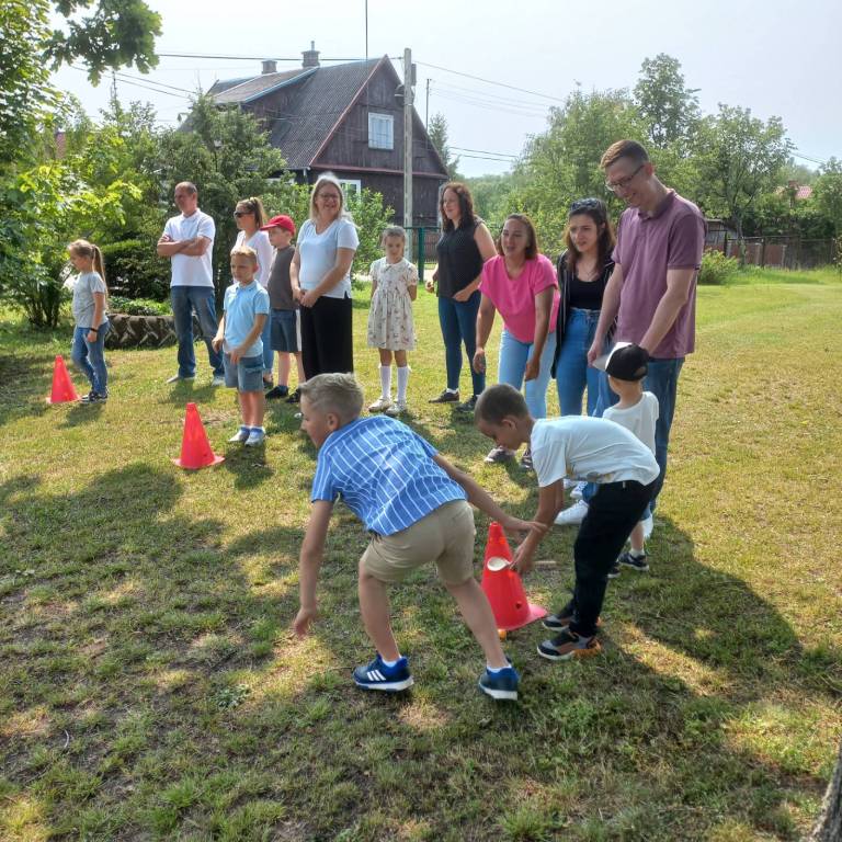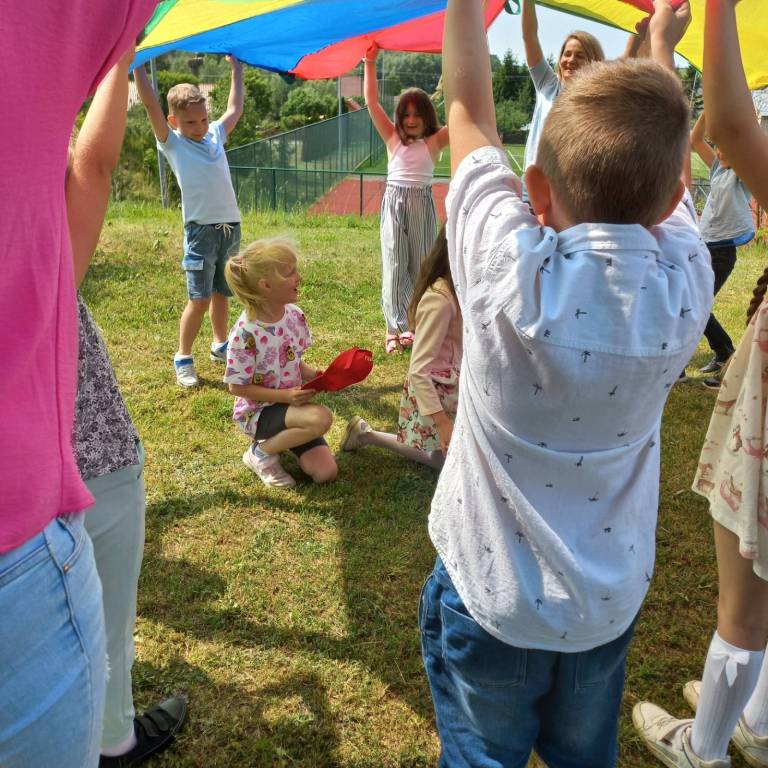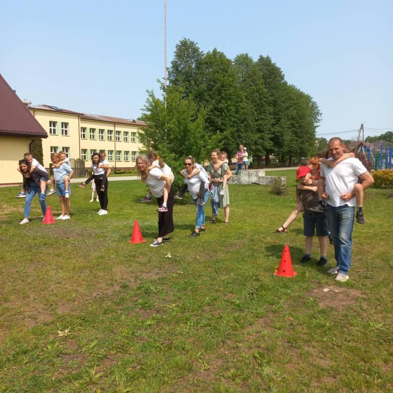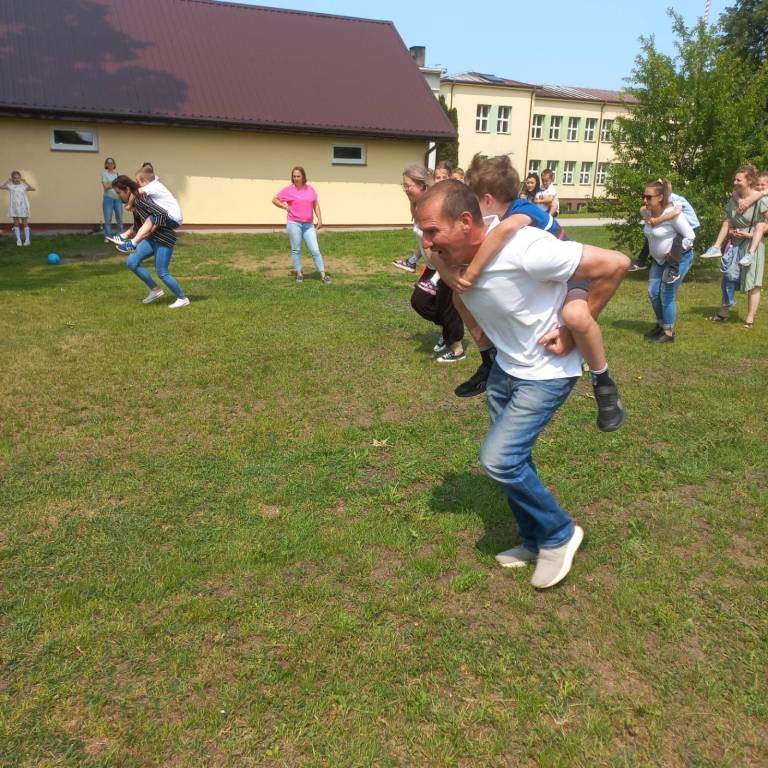 W dniu 04.06.2025r. w klasie I odbyła się uroczystość z okazji Dnia Rodziny, która została podzielona na część artystyczną oraz rozrywkową. Uczniowie zaprezentowali dla swoich najbliższych przedstawienie, w którym wcielili się w rolę rodziców. Zaśpiewali również piosenki oraz zatańczyli taniec w parach. Następnie dorośli spróbowali swoich sił w wykonaniu belgijki w towarzystwie swoich dzieci. Po części artystycznej mali aktorzy rozdali swoim bliskim własnoręcznie wykonane laurki, po czym udaliśmy się do ogrodu szkolnego na poczęstunek przygotowany przez rodziców oraz ognisko z kiełbaskami. Tego dnia zapewniono wiele atrakcji dla małych i dużych, takich jak: duże bańki mydlane, wata cukrowa, zabawy z chustą animacyjną, konkurencje sportowe i malowanie twarzy.