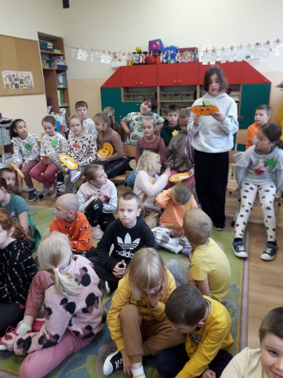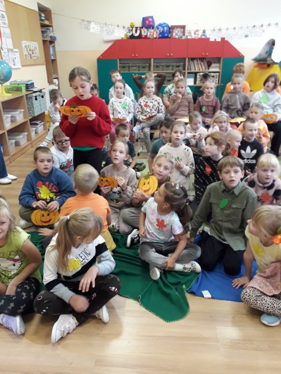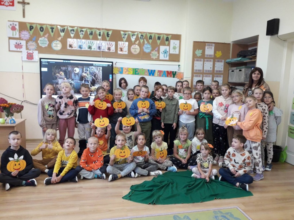 | Dziś uczniowie kl.1-3 przywitali jesień. Dzieci obejrzały film, poszukiwały dyń, na których ukryły się zagadki, sprawdziły się w biegu z ziemniakiem na łyżce i każda klasa wykonała jesienne zadanie. Mamy nadzieję że tak powitana jesień będzie barwna i ciepła .