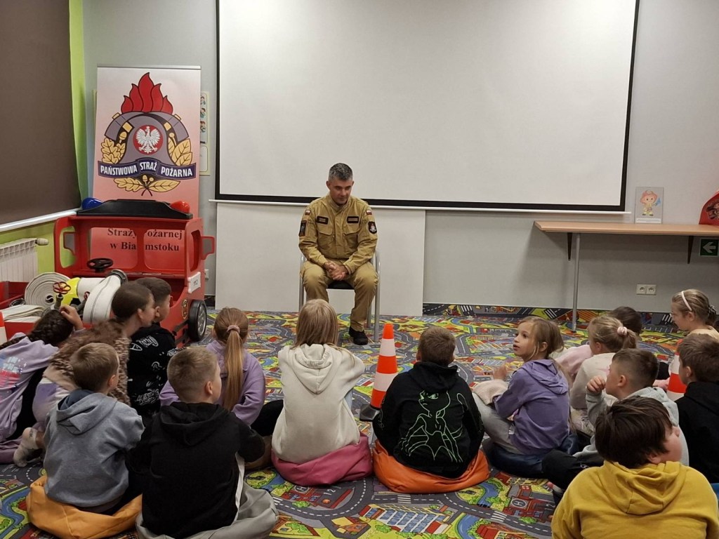 29 września 2025r uczniowie klasy 3 i kilkoro uczniów klasy 4 uczestniczyło w zajęciach w sali edukacyjnej OGNIK w Państwowej Straży Pożarnej w Białymstoku przy ul. Transportowej.