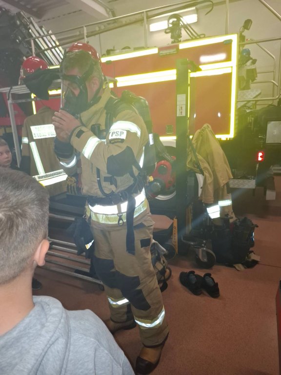 Uczestnicy wycieczki poznali zawód strażaka, zakres obowiązków- gaszenie pożarów, usuwanie skutków wypadków drogowych, wichur, pomoc w czasie powodzi, zabezpieczanie meczów na stadionie. Podziwiały specjalistyczne wozy strażackie wraz z całym wyposażeniem. Oglądali stroje, w jakie ubierają się strażacy do różnych akcji.