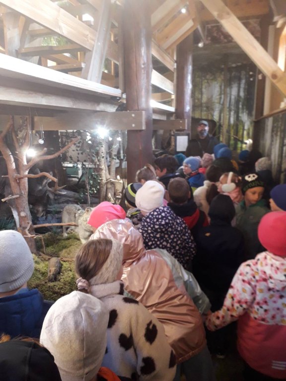 Pod opieką pana Arkadiusza Juszczyka dzieci zwiedziły Galerię na Skraju Puszczy 🖼️, zobaczyły zegar dendrologiczny ⏰🌳 oraz podziwiały ptaki w wolierach 🦉🦆.