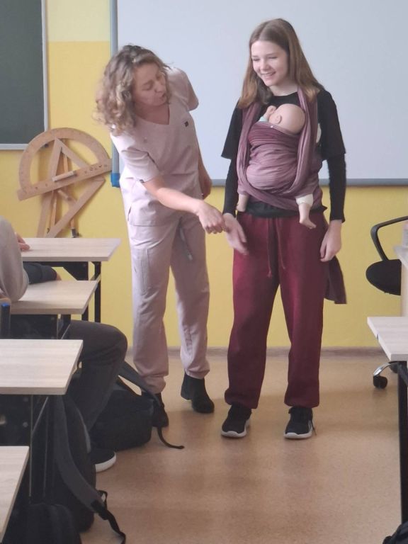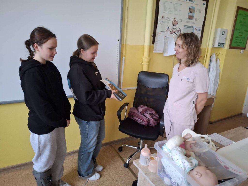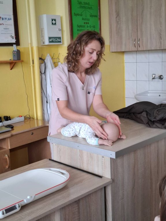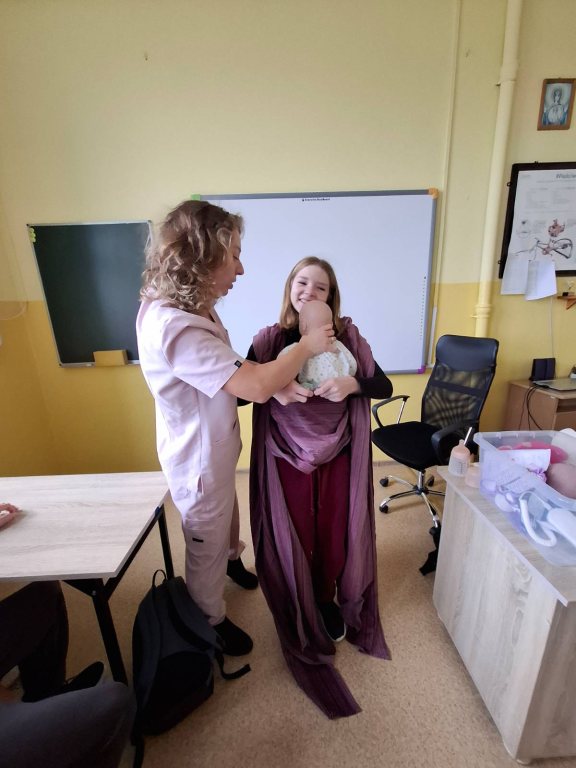 Podczas spotkania uczniowie dowiedzieli się, jak wygląda codzienna praca położnej, jak ważną rolę odgrywa w opiece nad matką i dzieckiem oraz jak wiele empatii, wiedzy i odpowiedzialności wymaga ten zawód ❤️.