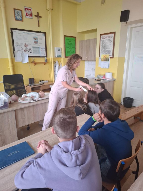 W ramach zajęć z doradztwa zawodowego uczniowie naszej szkoły mieli wyjątkową okazję spotkać się z panią położną, która w ciekawy i inspirujący sposób przybliżyła im tajniki swojego zawodu.