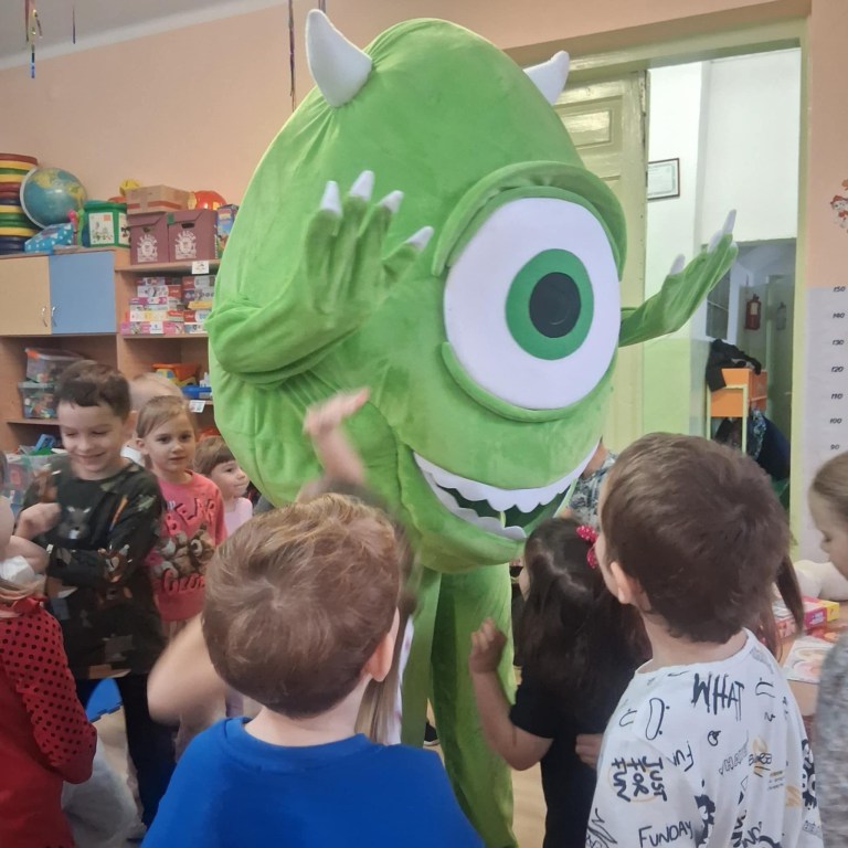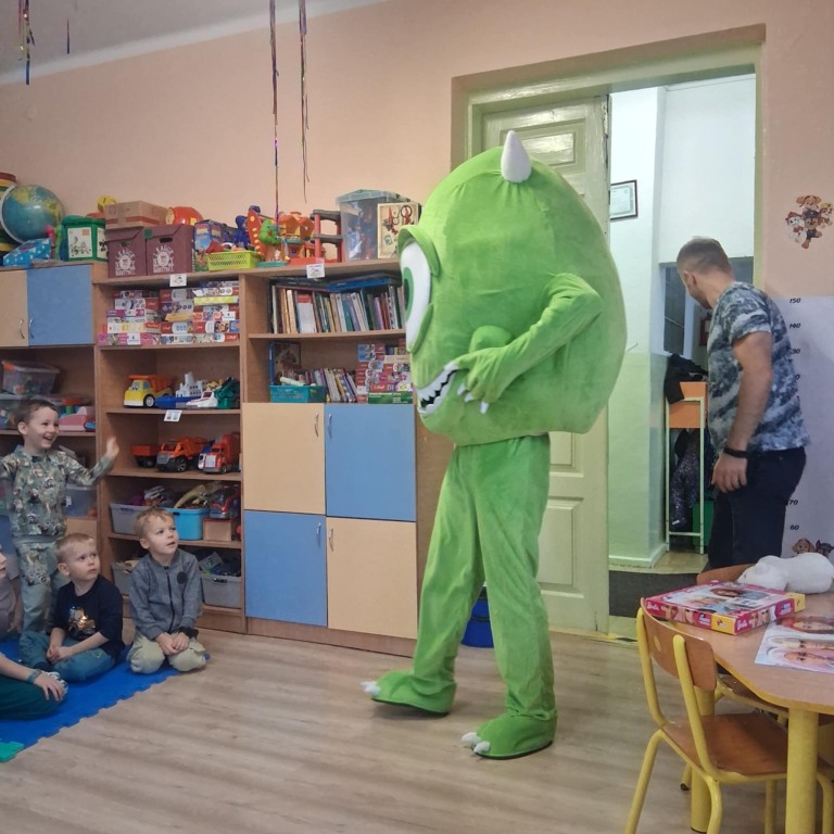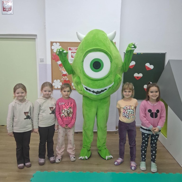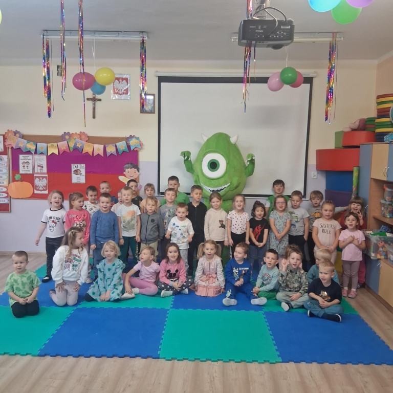 Dziś w naszym przedszkolu mieliśmy wyjątkowego gościa – odwiedził nas **Figlostworek** z sali zabaw **Figlosfera!**