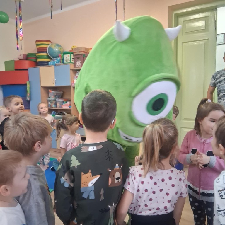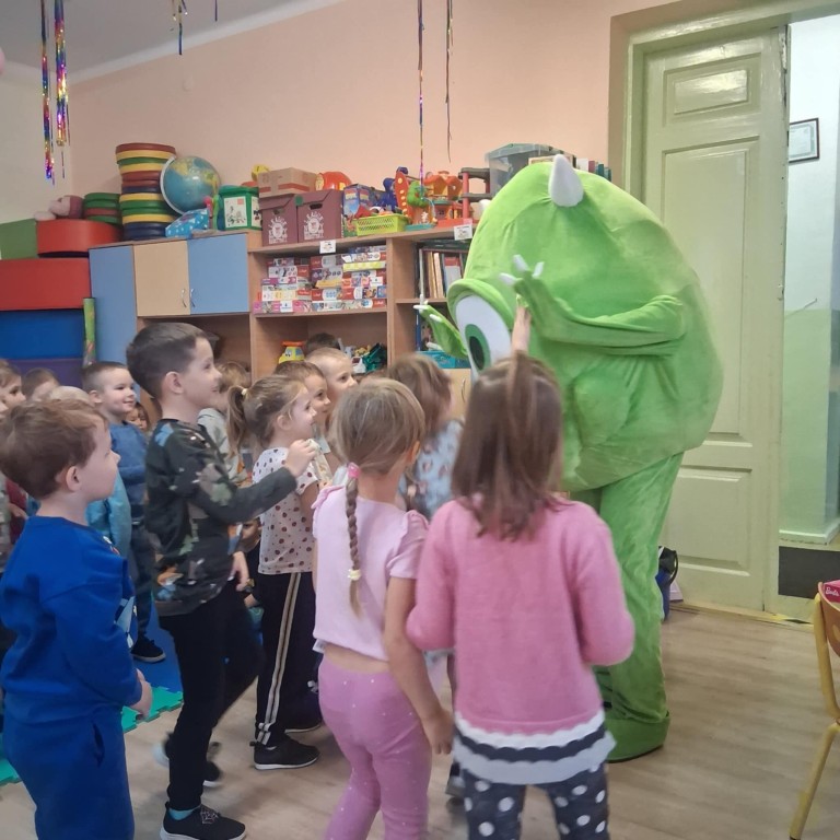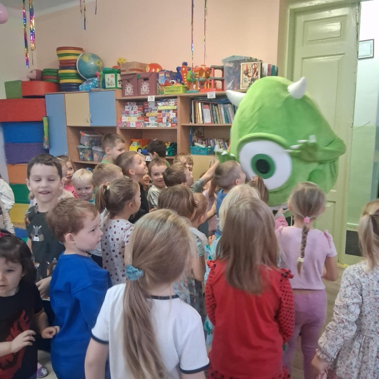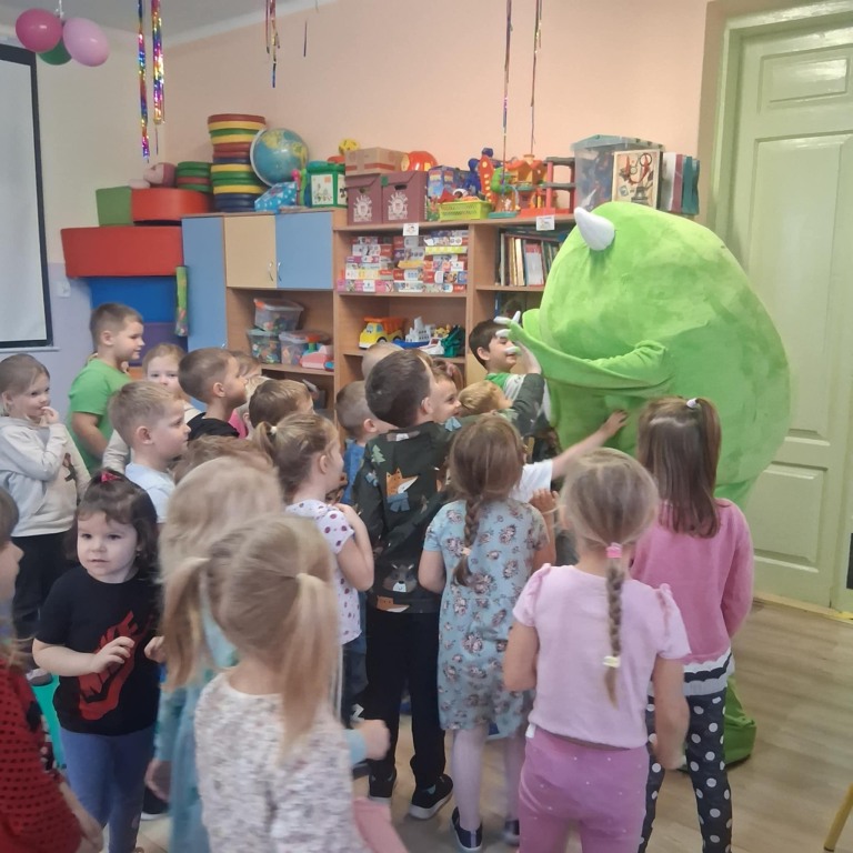 Dzieci były zachwycone wspólną zabawą i przytulasami od naszego kolorowego gościa