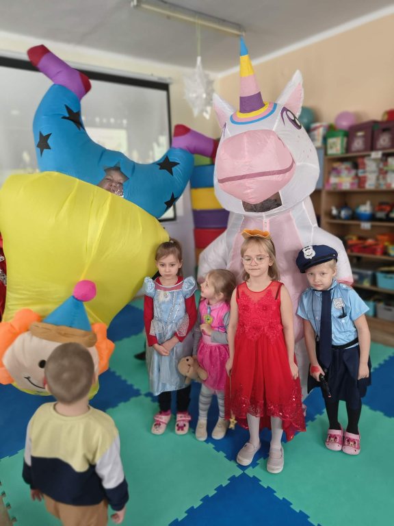 Odwiedził nas ogromny, dmuchany jednorożec, który wzbudził prawdziwy zachwyt wśród dzieci, oraz niezwykły klaun chodzący na rękach, który zaprezentował swoje niesamowite umiejętności i rozbawił wszystkich do łez!