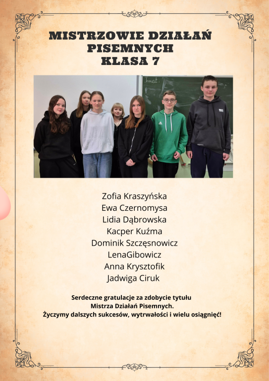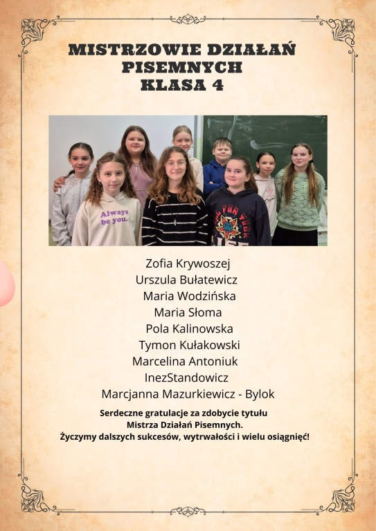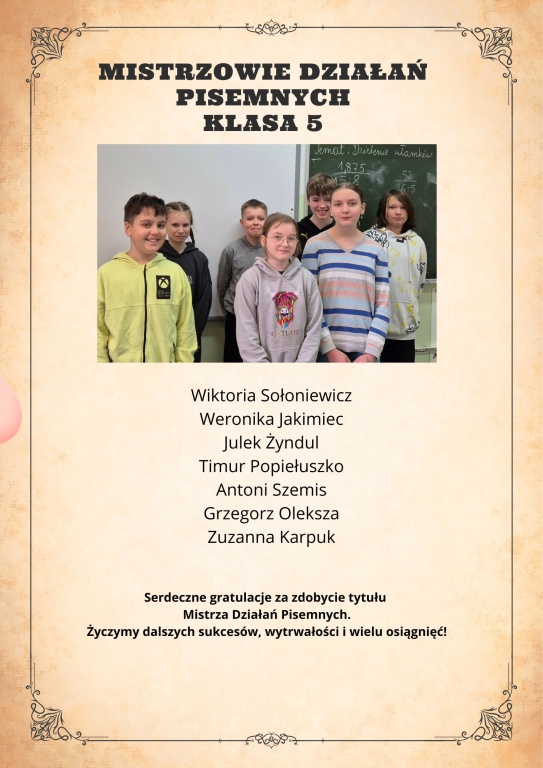 Najlepsi z nich otrzymali tytuł „Mistrza działań pisemnych”.