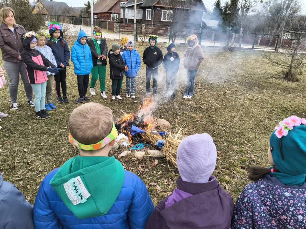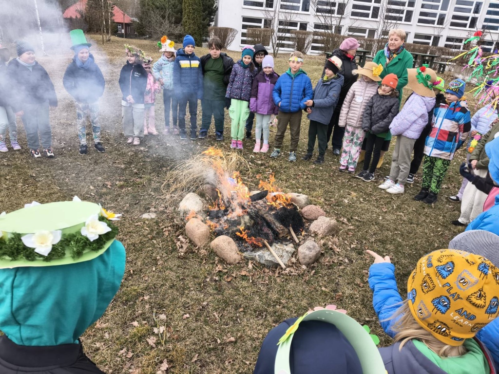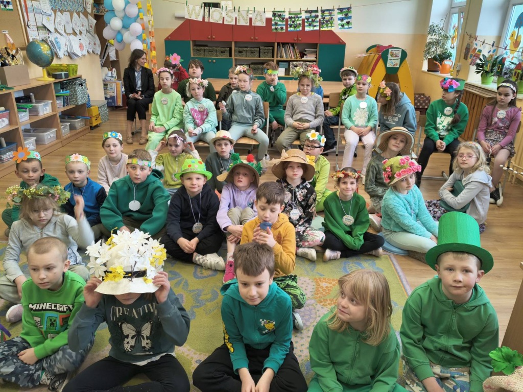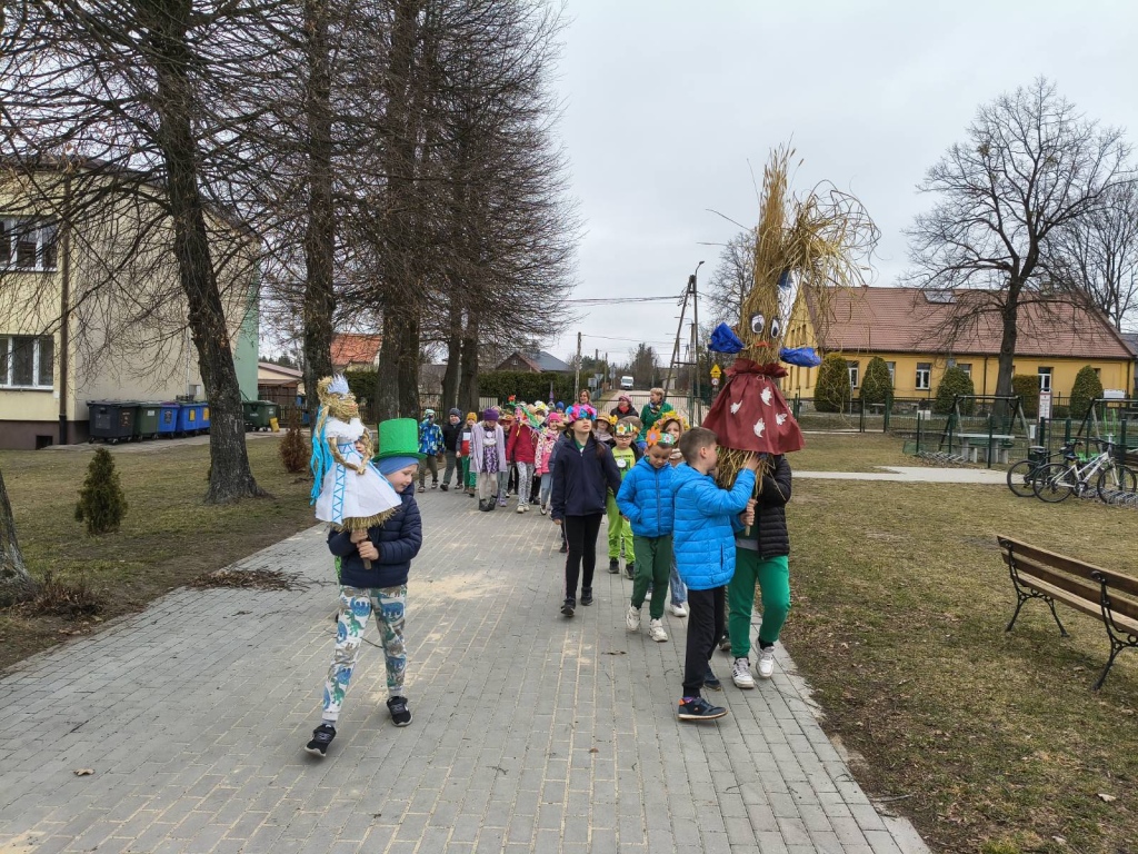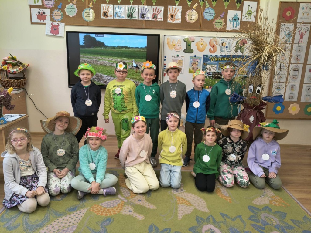 20 marca 2026r. Dzieci z kl.1-3 obchodziły uroczyste powitanie wiosny. Uczniowie przebrali się w zielone stroje, wszyscy przygotowali wiosenne nakrycia głowy. Dzień rozpoczęliśmy od spalenia Marzanny – zimowej panny.