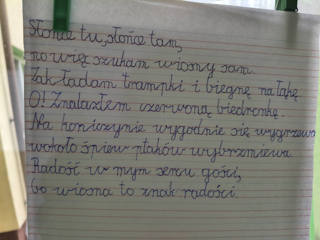 Po powrocie rozstrzygnięty został konkurs pt. „Wiersz o wiośnie”.
