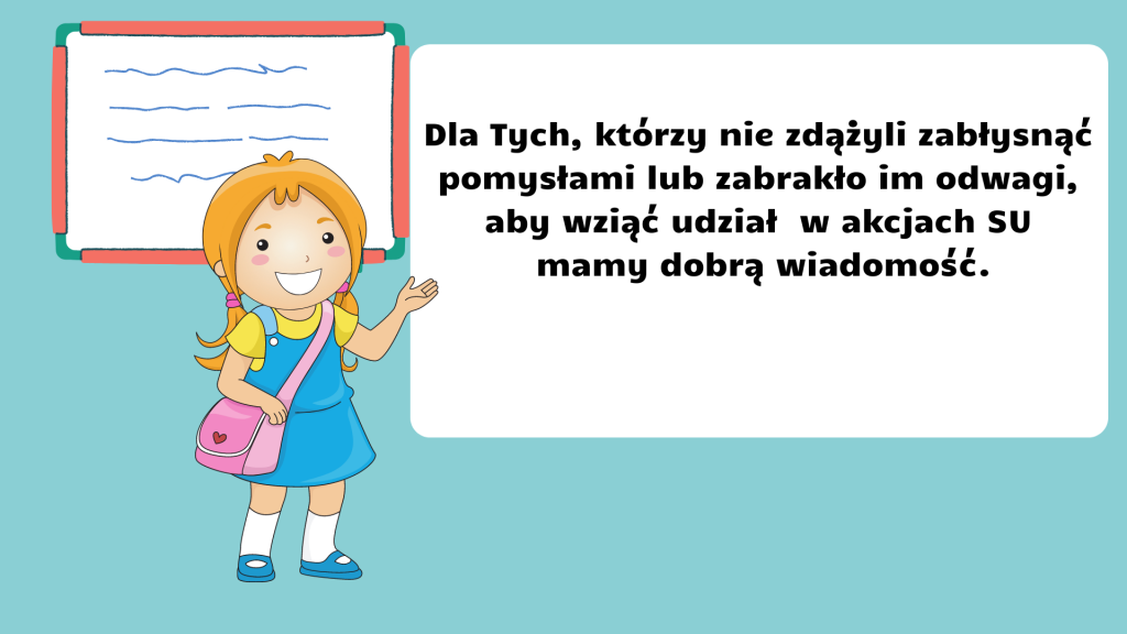 Samorząd Uczniowski w I semestrze roku szkolnego 2021/2022 zrealizował wiele przedsięwzięć. Wszystkie działania i podejmowane akcje miały na celu uatrakcyjnienie życia szkolnego, motywowanie uczniów do kreatywności, próbę zagospodarowania wolnego czasu, zrobienia czegoś dla innych i integrowanie szkolnej społeczności.