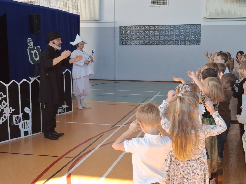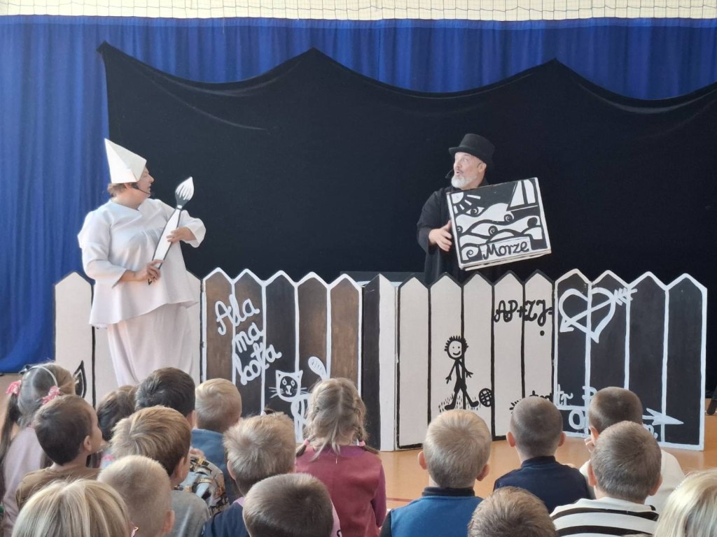 „Czarne i Białe”, czyli świat bajek pełen kolorów. To był niezwykły spektakl Teatru Pod Orzełkiem. Chociaż tytuł sugeruje coś innego, to młodzi widzowie mogli przeżyć całą paletę emocji, związanych z historiami prosto z czarno-białego miasteczka. Za możliwość ugoszczenia Teatru pod Orzełkiem dziękujemy Pani Elżbiecie Adamowicz, która wraz ze swą Księgarnią A KUKU bierze udział w programie „Certyfikat dla małych księgarni” dofinansowanym ze środków Instytutu Książki i nigdy nie zapomina o nas, co wzbogaca ofertę wydarzeń w naszej placówce.